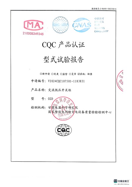 - 關(guān)于我們 - 資質(zhì)榮譽 - 交流低壓開關(guān)柜(GGD)資質(zhì)